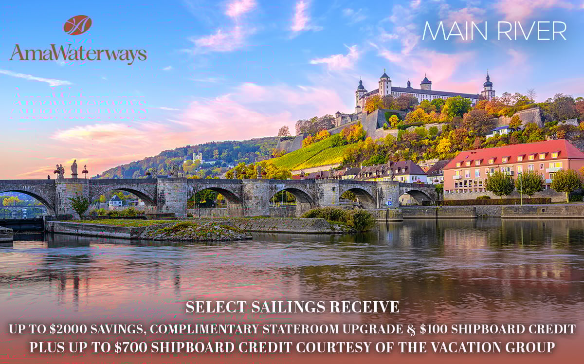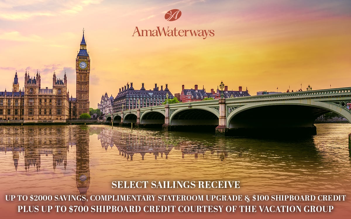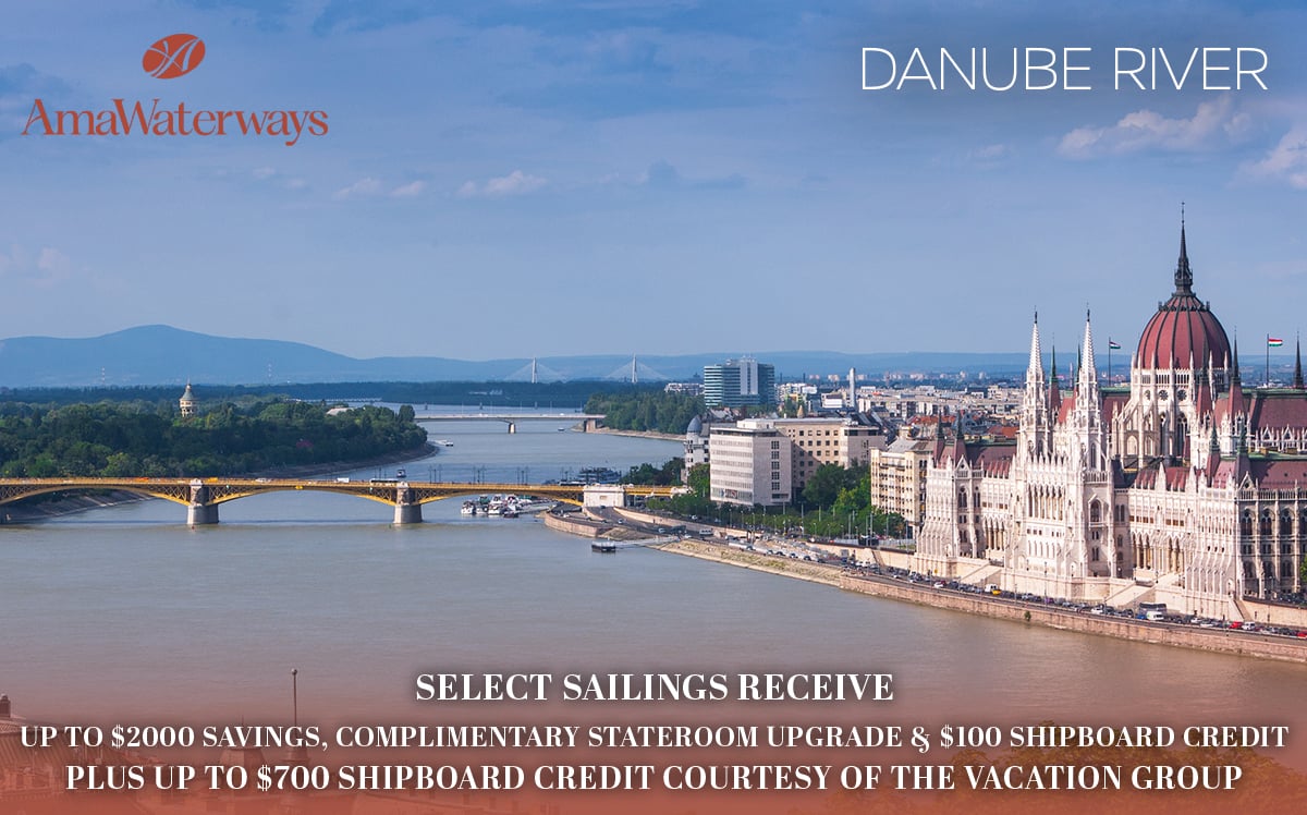 AmaWaterways Cruise Deals Promotion Expires: Friday, April 24, 2026 Not valid with any other promotion or discount New Bookings Only 800-493-6609 Book virtually any new AmaWaterways River cruise this week and receive: Up to $700 Shipboard Credit Per Cabin (7 nt. or less - $500; 8+ nt. - $700) PLUS, Save 5% on Select Sailings (Not combinable with all promotions, contact a cruise specialist for more information) PLUS, Shop AmaWaterways By Destination Terms and Conditions Minimum cabin cost applies. Rates below are in USD and based on double occupancy. CAD rates are available. All advertised pricing and amenities are in US Dollars. Booking CAD may result in a difference to amenities from what is outlined above. Call for details. Deposit based on cruise only. All rates are per person in USD for cruise only, inclusive of port charges (7 nights - $240, 14 nights - $480) based on double occupancy in a base category stateroom unless stated otherwise. Military offers are only applicable to active or retired military or veterans with valid military ID or discharge certificate, and only applies to new FIT and Group reservations. Military $250 Discount is per eligible person, applicable to cruise only; and is combinable with other promotions and discounts available at the time of booking. Must ask for promo code MIL250. Military 2-for-1 Cruise Savings is only valid on select sailings and based on double occupancy; and is not combinable with any other promotions. 2-for-1 Cruise Savings applies to the cruise fare only, excluding port charges. Must ask for promo code MIL2FOR1. Military 10% Single Supplement is applicable to solo travelers in lieu of 2-for-1 Cruise Savings; and is not combinable with any other promotions. Must ask for promo code MILSOLO. Offers are limited to availability, capacity controlled and subject to change or termination without notice. Stateroom upgrades, optional land programs, airfares and gratuities are additional. AmaWaterways reserves the right to correct any errors or omissions at any time. All above promotions adhere to the following terms: Port charges, stateroom upgrades, optional land packages, visas, air fare, and gratuities are additional. Offer is not combinable with any other promotions/discounts (unless stated), limited to availability, capacity controlled and subject to modifications, changes, reductions or termination without notice. AmaWaterways reserves the right to correct any errors or omissions at any time. Other restrictions apply. For full terms and conditions, please visit www.amawaterways.com/terms-conditions. Registration as a seller of travel does not constitute approval by the State of California. CST#2065452-20. |   $4548 pp Balcony: 7 nt. Melodies of the Danube (Easter Delights) w/ $500 Credit Promotion Expires: Friday, April 24, 2026 Not valid with any other promotion or discount New Bookings Only 800-493-6609 Book virtually any new AmaWaterways River cruise this week and receive: Up to $700 Shipboard Credit Per Cabin (7 nt. or less - $500; 8+ nt. - $700) PLUS, Save 5% on Select Sailings (Not combinable with all promotions, contact a cruise specialist for more information) PLUS, Shop AmaWaterways By Destination Click Here For Terms and Conditions | 7 night Magna on the Danube (Budapest/HUNGARY, Bratislava/SLOVAKIA, Vienna/AUSTRIA, Krems/AUSTRIA, Linz/AUSTRIA, Passau/GERMANY, Vilshofen/GERMANY) | Date | Ship | Rates From | CALL 800-493-6609 or BOOK IT NOW | | 05/03/26 | AmaMagna | $4749 pp |  | | 05/31/26 | AmaMagna | $4349 pp |  | | 06/28/26 | AmaMagna | $4349 pp |  | | 07/26/26 | AmaMagna | $3849 pp |  | | 08/09/26 | AmaMagna | $4599 pp |  | | 08/23/26 | AmaMagna | $4649 pp |  | | 09/06/26 | AmaMagna | $5249 pp |  | | 10/18/26 | AmaMagna | $4449 pp |  | | 11/01/26 | AmaMagna | $4149 pp |  | | 12/27/26 | AmaMagna | $3449 pp |  | 7 night Gems of Southeast Europe (Vidin/BULGARIA, Ruse/BULGARIA, Belgrade/SERBIA, Mohács/HUNGARY, Budapest/HUNGARY, Vukovar/CROATIA, Novi Sad/SERBIA) | Date | Ship | Rates From | CALL 800-493-6609 or BOOK IT NOW | | 05/04/26 | AmaBella | $ 4549 pp |  | | 05/18/26 | AmaVerde | $ 4449 pp |  | | 05/24/26 | AmaMagna | $ 4849 pp |  | | 06/01/26 | AmaBella | $ 4449 pp |  | | 06/15/26 | AmaVerde | $ 4449 pp |  | | 06/29/26 | AmaBella | $ 4449 pp |  | | 07/13/26 | AmaVerde | $ 4449 pp |  | | 07/27/26 | AmaBella | $ 4449 pp |  | | 08/10/26 | AmaVerde | $ 4449 pp |  | | 08/24/26 | AmaBella | $ 4949 pp |  | | 09/07/26 | AmaVerde | $ 5049 pp |  | | 09/21/26 | AmaBella | $ 4849 pp |  | | 10/05/26 | AmaVerde | $ 4849 pp |  | | 10/19/26 | AmaBella | $ 4849 pp |  | | 11/02/26 | AmaVerde | $ 4099 pp |  | 14 night Grand Danube Cruise (Vidin/BULGARIA, Ruse/BULGARIA, Belgrade/SERBIA, Vienna/AUSTRIA, Weißenkirchen in der Wachau/AUSTRIA, Linz/AUSTRIA, Krems an der Donau/AUSTRIA, Grein/AUSTRIA, Vilshofen/GERMANY, Passau/GERMANY, Mohács/HUNGARY, Budapest/HUNGARY, Bratislava/SLOVAKIA, Vukovar/CROATIA, Ilok/CROATIA) | Date | Ship | Rates From | CALL 800-493-6609 or BOOK IT NOW | | 05/18/26 | AmaVerde | $ 7799 pp |  | | 06/01/26 | AmaBella | $ 7549 pp |  | | 06/15/26 | AmaVerde | $ 7799 pp |  | | 06/29/26 | AmaBella | $ 6299 pp |  | | 07/13/26 | AmaVerde | $ 6299 pp |  | | 07/27/26 | AmaBella | $ 6299 pp |  | | 08/10/26 | AmaVerde | $ 6549 pp |  | | 08/24/26 | AmaBella | $ 7999 pp |  | | 09/07/26 | AmaVerde | $ 8199 pp |  | | 10/05/26 | AmaVerde | $ 8199 pp |  | | 10/19/26 | AmaBella | $ 7749 pp |  | | 11/02/26 | AmaVerde | $ 6699 pp |  | 7 night Gems of Southeast Europe (Wine Cruise) (Giurgiu/ROMANIA, Rousse/BULGARIA, Vidin/BULGARIA, Belgrade/SERBIA, Vukovar/CROATIA, Mohacs - Pecs/HUNGARY, Budapest/HUNGARY) | Date | Ship | Rates From | CALL 800-493-6609 or BOOK IT NOW | | 08/03/26 | AmaVerde | $4449 pp |  | | 11/09/26 | AmaBella | $3349 pp |  | | 11/15/26 | AmaMagna | $3699 pp |  | 7 night Romantic Danube (Vienna/AUSTRIA, Weißenkirchen in der Wachau/AUSTRIA, Linz/AUSTRIA, Krems an der Donau/AUSTRIA, Wachau/GERMANY, Vilshofen/GERMANY, Passau/GE