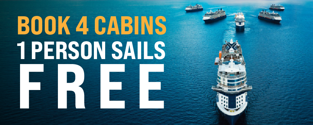 Looking to sail as a group for a family vacation, girls trip, bachelor(ette) party, reunion, etc.? When you book your group with The Vacation Group, for every 8 cabins you book, 1 person sails free. OR, book a cruise departing between June 1, 2026 and August 31, 2026, and for every 4 cabins you book, 1 person sails free. Don't wait, book your group cruise today.
